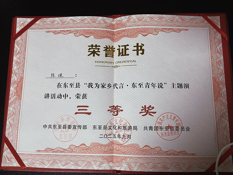 這場主題演講活動(dòng),不僅是青年風(fēng)采的集中展示,更是東至青年扎根家鄉(xiāng)、賦能發(fā)展的生動(dòng)縮影。他們的演講或許風(fēng)格各異,卻有著同樣的赤誠——有人聚焦田野間的振興希望,有人回望歷史里的精神坐標(biāo),有人歌頌山水間的生態(tài)之美。每一段講述,都是一次對家鄉(xiāng)的深情告白;每一個(gè)聲音,都是一股蓬勃向上的青春力量。也正是這些年輕的“東至新聲”,讓東至的鄉(xiāng)土情、紅色魂、振興志,在他們的講述中被更多人聽見、看見、記住。其中,集團(tuán)青年陳琛演講的作品《升金湖的翅膀 托起我的歸鄉(xiāng)路》榮獲三等獎(jiǎng)。(集團(tuán)團(tuán)總支 陳?。?/span>