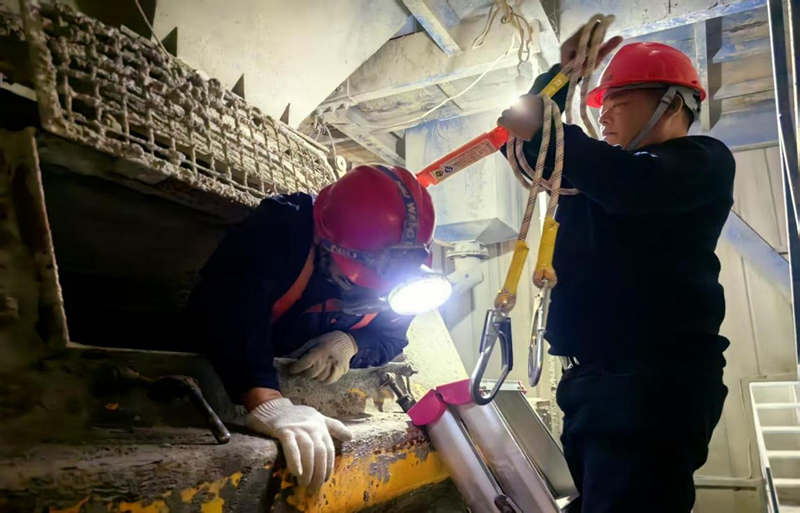 4. 現(xiàn)場(chǎng)處置:救援組檢測(cè)氣體濃度,確定氧氣含量下降,穿戴防護(hù)服、空氣呼吸器,通過三腳架+安全繩系統(tǒng)進(jìn)入倉內(nèi),將暈倒人員固定在安全吊帶上,提升至地面。