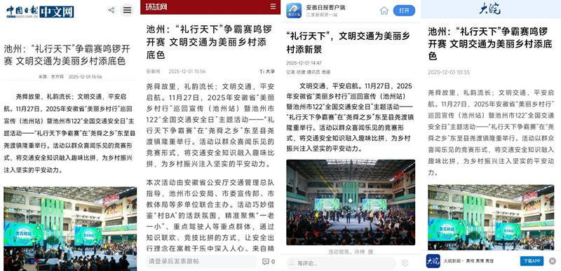 堯舜故里,禮韻流長(zhǎng);文明交通,平安啟航。11月27日,2025年安徽省“美麗鄉(xiāng)村行”巡回宣傳(池州站)暨池州市122“全國(guó)交通安全日”主題活動(dòng)——“禮行天下?tīng)?zhēng)霸賽”在“堯舜之鄉(xiāng)”東至縣堯渡鎮(zhèn)隆重舉行。