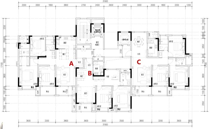 部分戶型:A、C:125㎡,三室兩廳一廚兩衛(wèi);B:95㎡,兩室兩廳一廚兩衛(wèi)