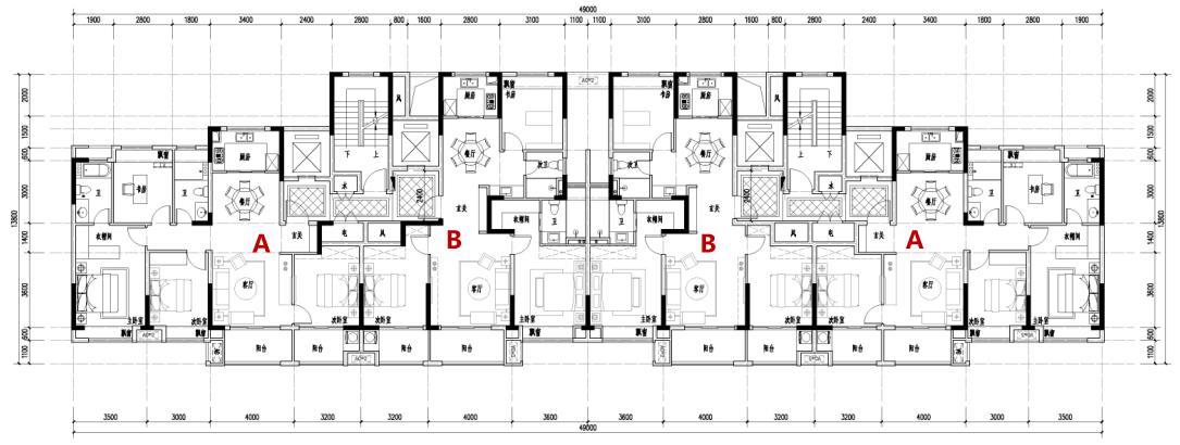部分戶(hù)型圖:A:139㎡,四室兩廳一廚兩衛(wèi);B:127㎡,三室兩廳一廚兩衛(wèi)
